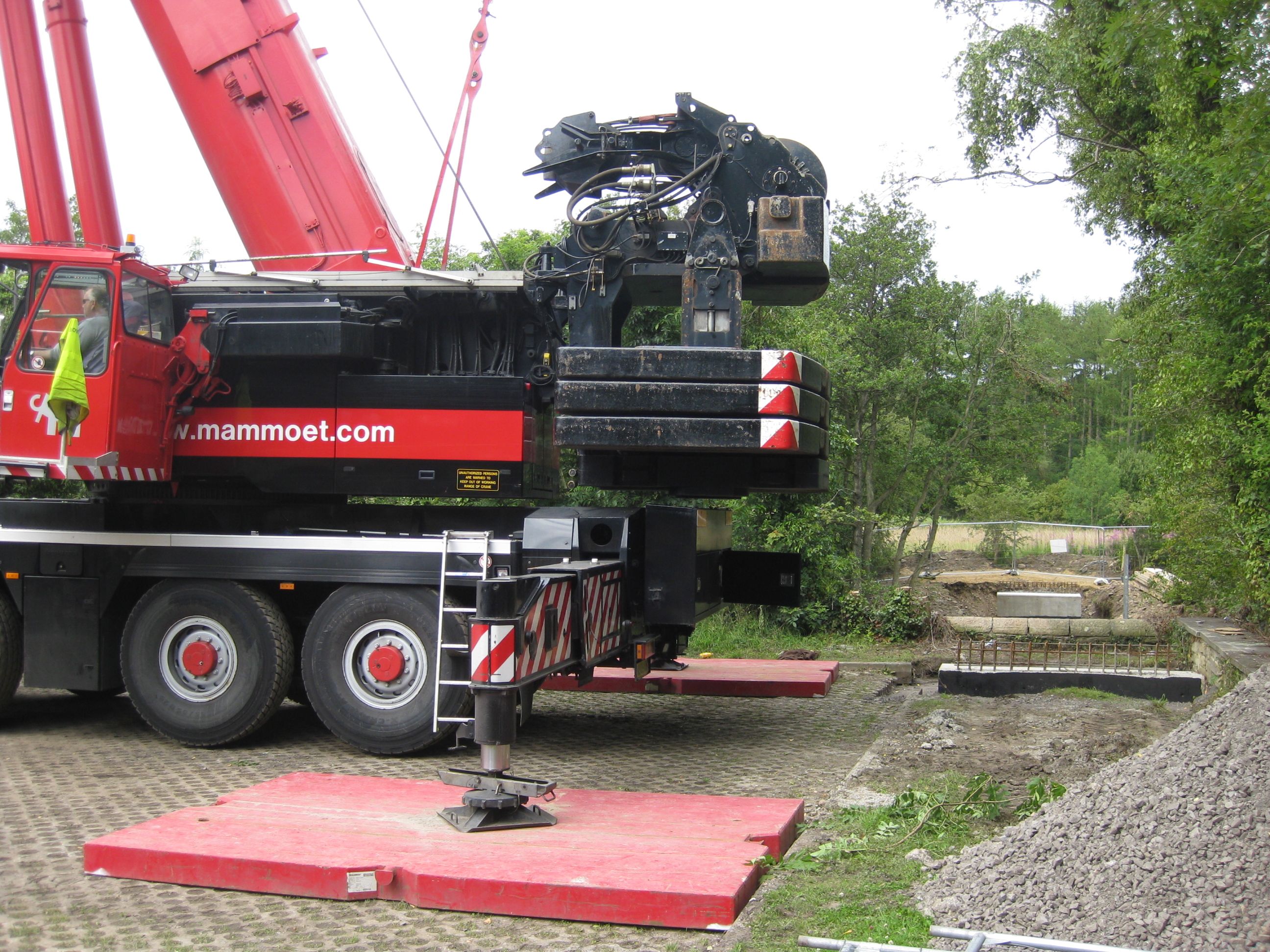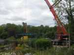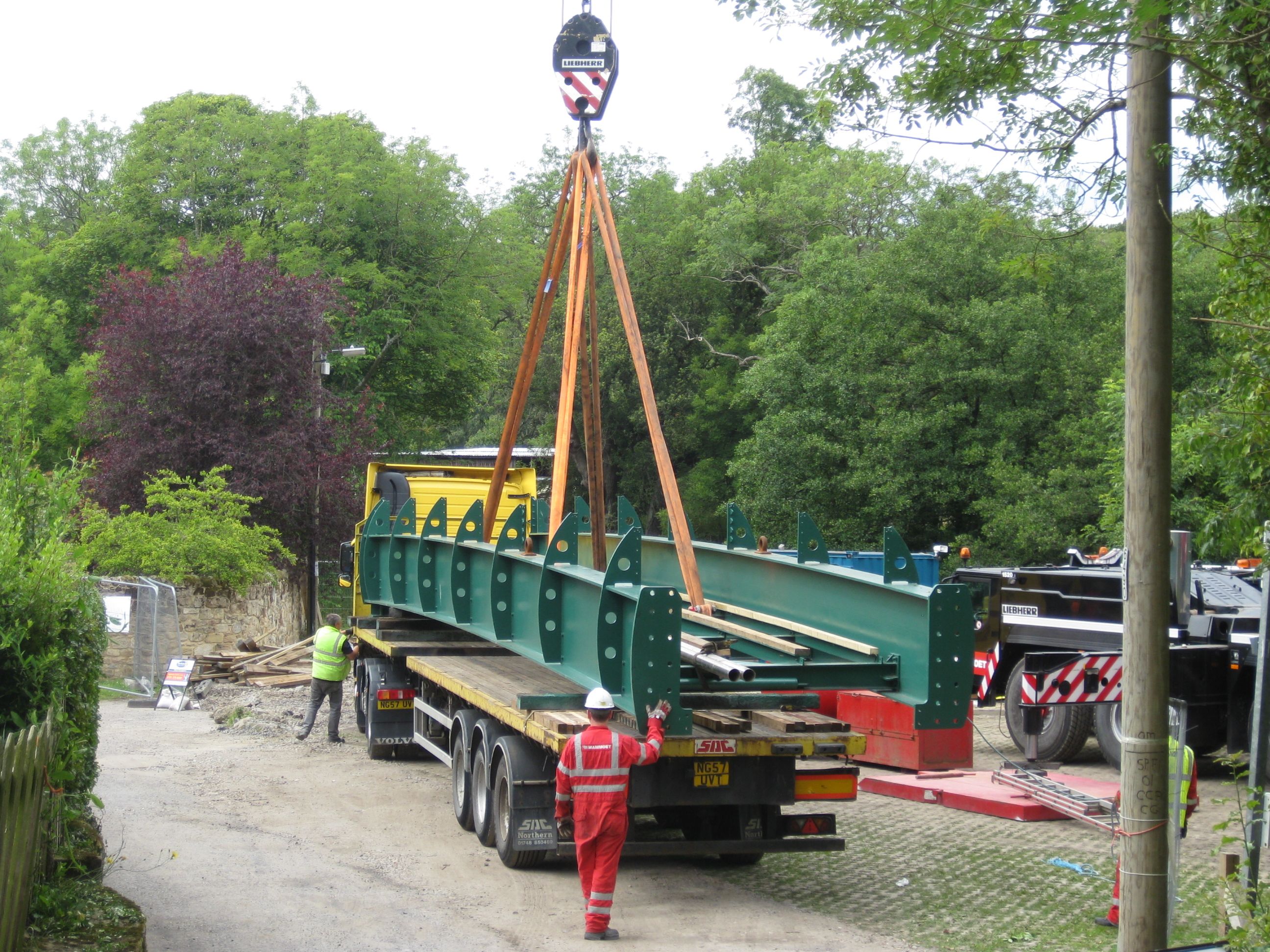 The photos show the first section being unloaded at lunchtime today and where the metal structure will be fixed onto the river bank.