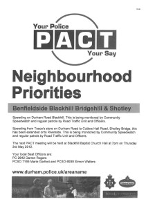 The next PACT meeting is to be held on 3rd May 2012 at 7pm in the Blackhill Baptist Church hall.