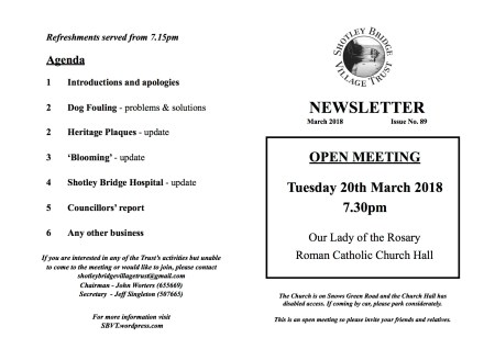 The Trust’s next ‘Open’ meeting is being held next Tuesday at the Catholic Church Hall on Snows Green Road.