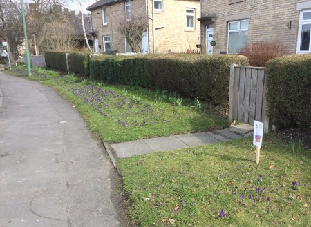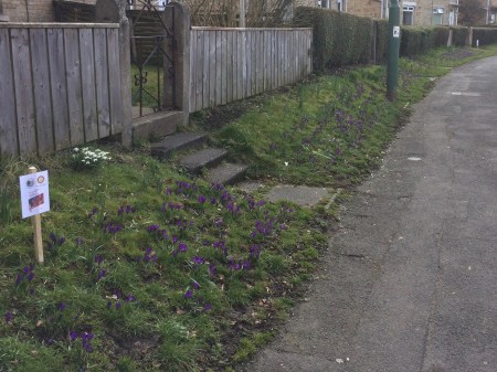 Last October volunteers from the Trust planted 5000 purple crocus bulbs on the verge opposite Rumi’s. They had been provided by Consett Rotary Club to raise awareness of its ‘Purple for Polio’ national campaign.