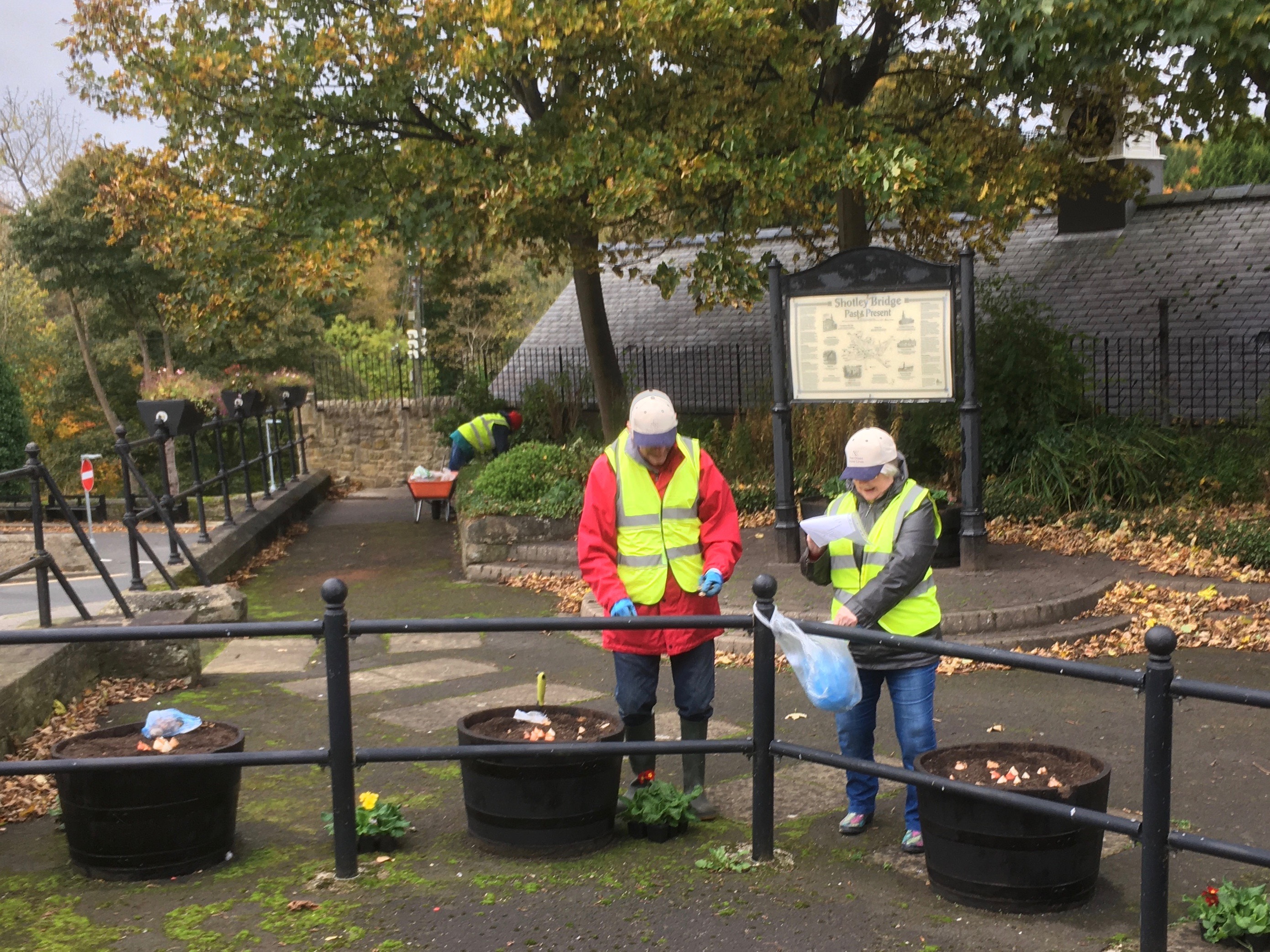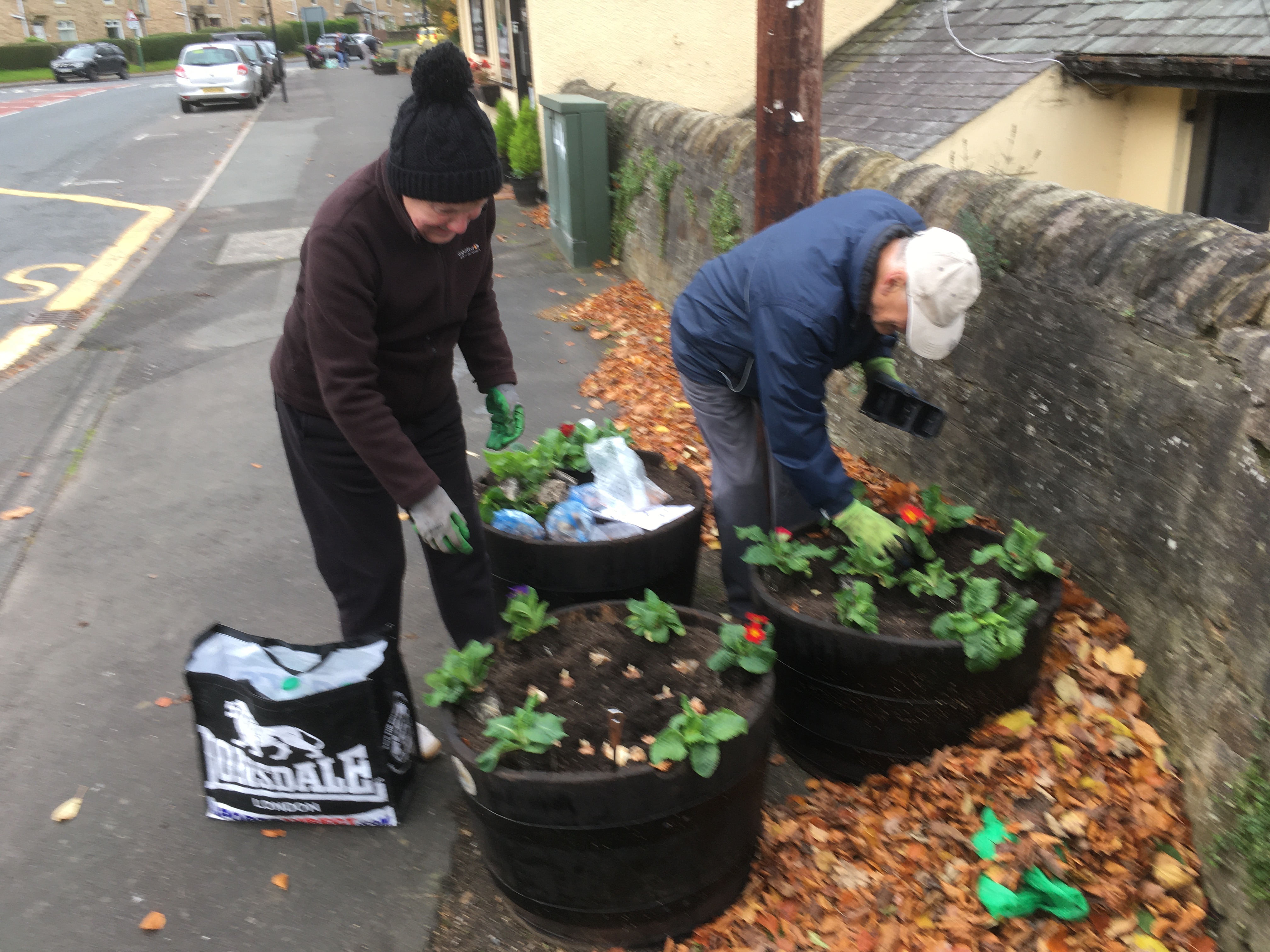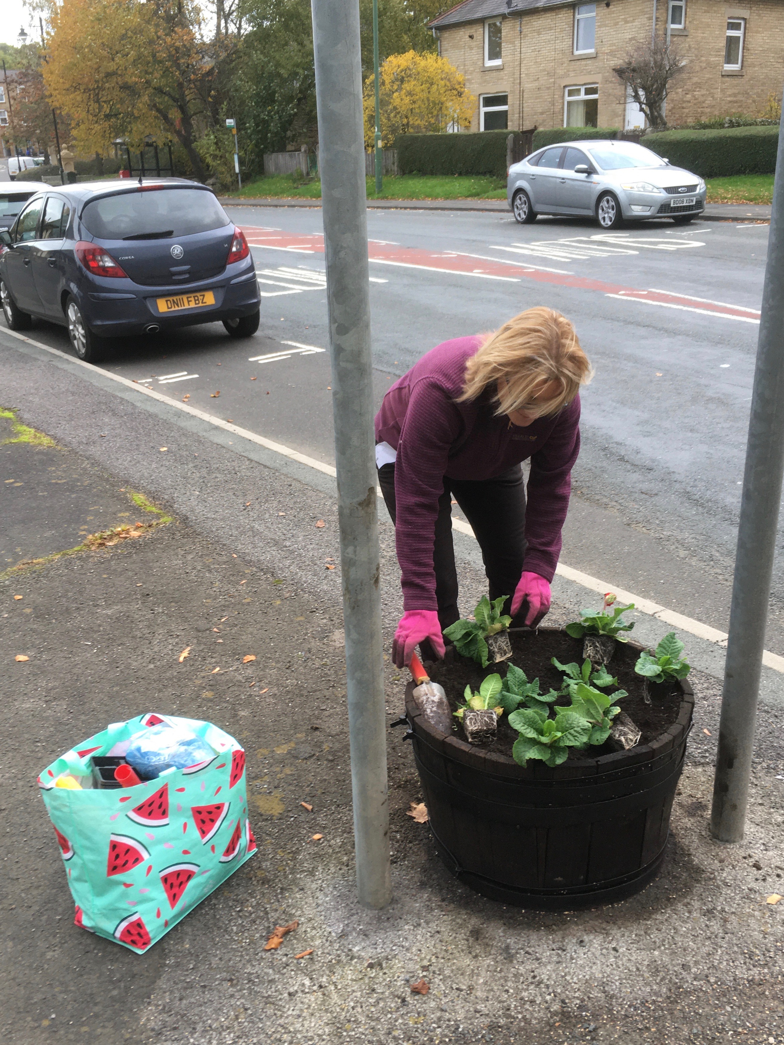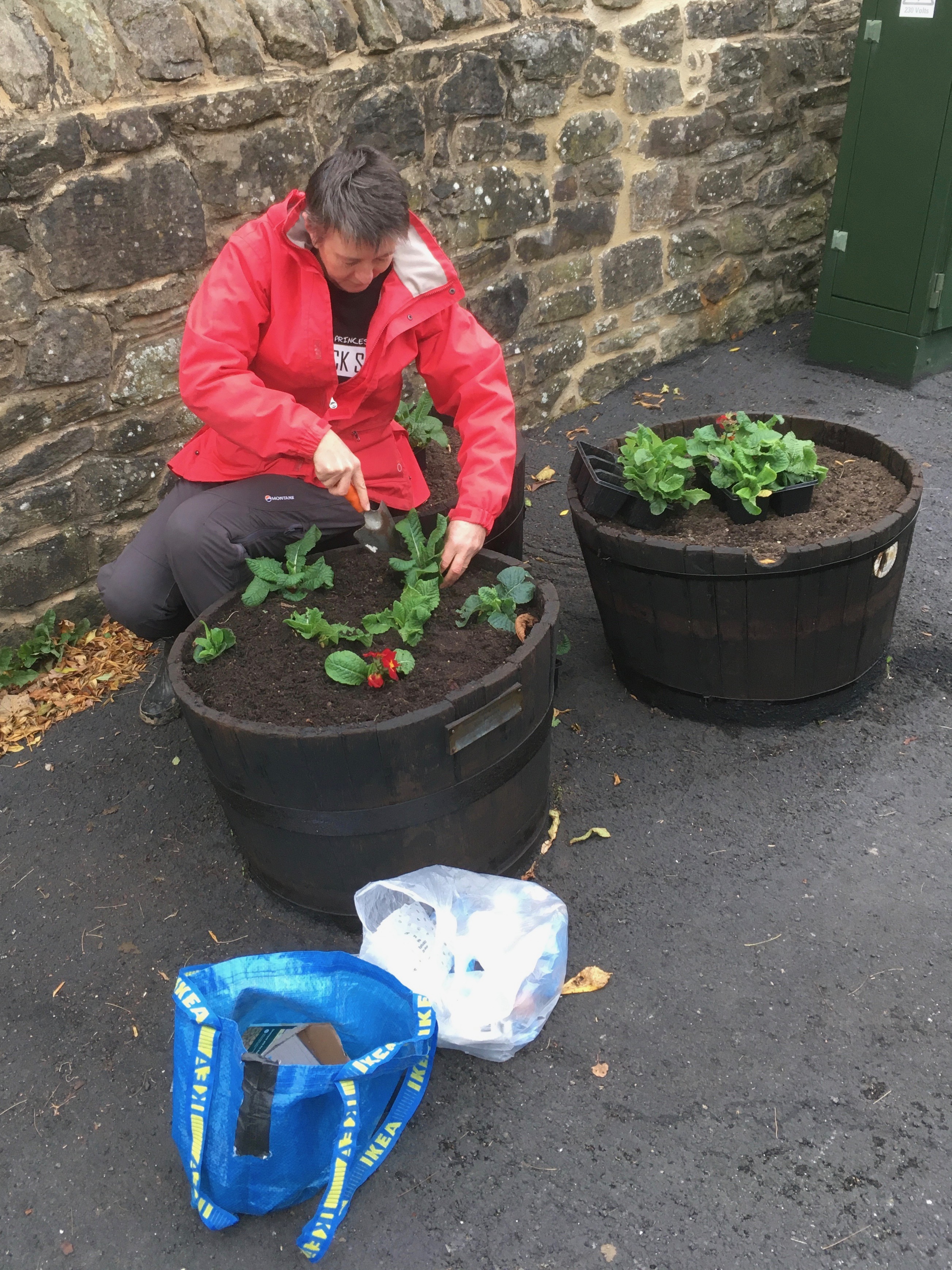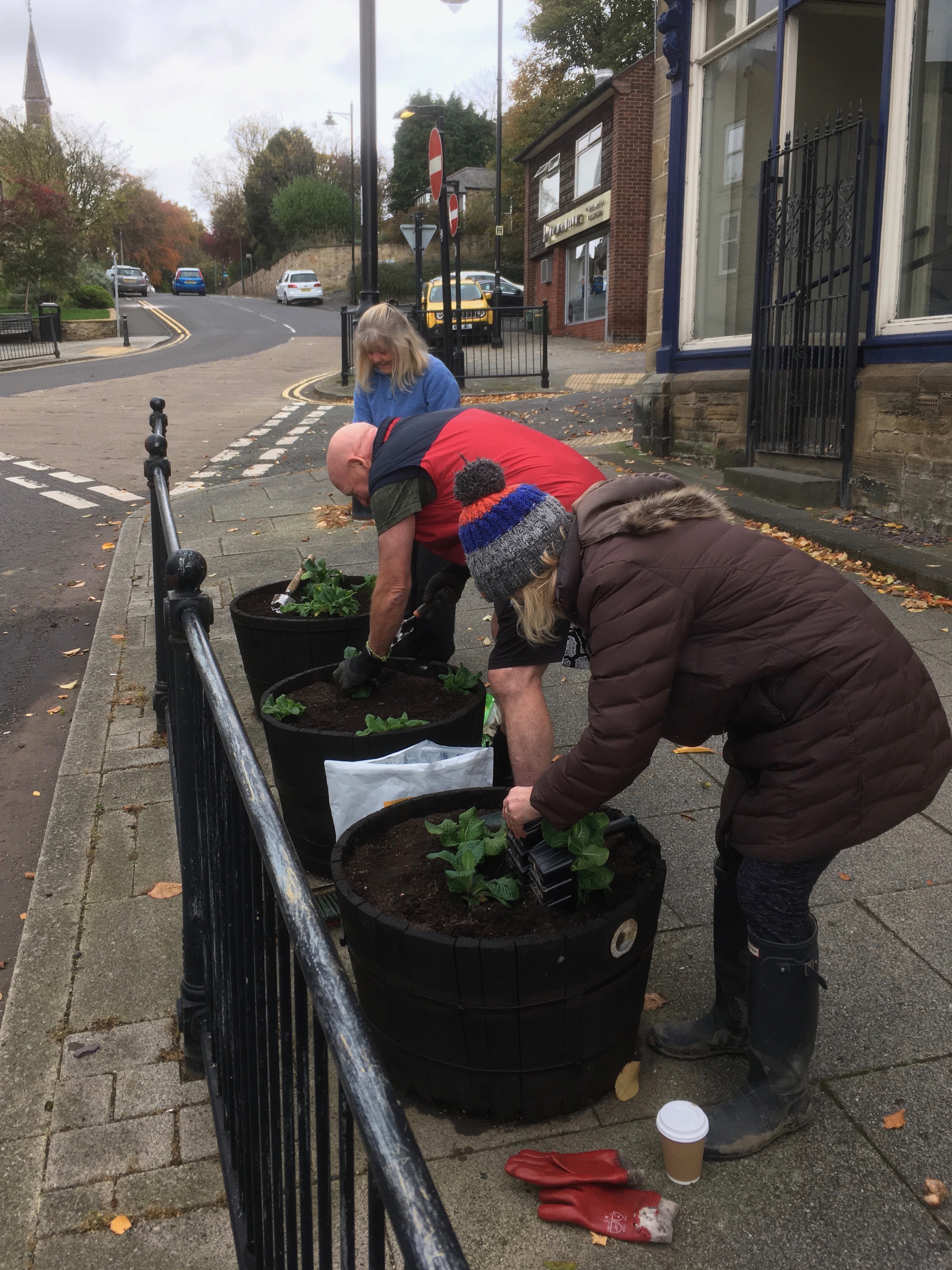 This morning two dozen volunteers from the Village Trust helped plant the village tubs with over 600 polyanthus, together with tulip, daffodil, crocus and grape hyacinth bulbs.