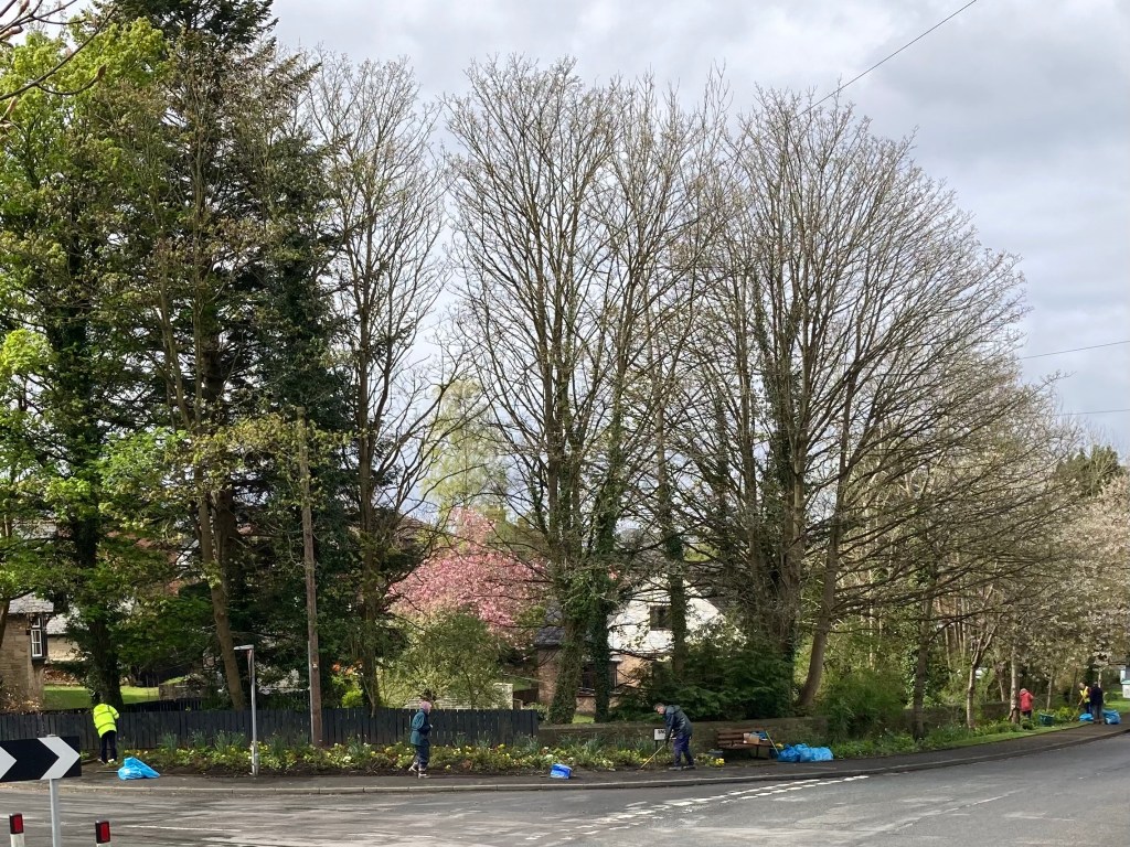 Seven volunteers from the Village Trust spent a couple of hours clearing and weeding the rose and shrub beds at Snows Green this morning.