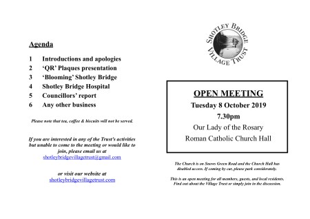 The AGM of the Trust is to be held on Wednesday 11 June at 7.00pm, followed by an Open Meeting at 7.30pm.