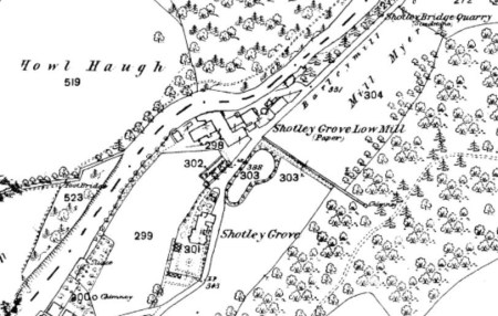 Shotley Grove paper mills were the first in the North of England and were some of the largest in England during the 19th century. In 1881 about 300 workers were employed and peak production reached 95 tons per week in 1894. However just 14 years later in 1908 the mills were closed, due to the introduction of paper production from wood pulp and cheap foreign imports.